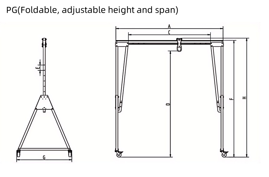 PG aluminum portable gantry is an independent manual gantry that can be re-positioned within the workshop to suit your operation